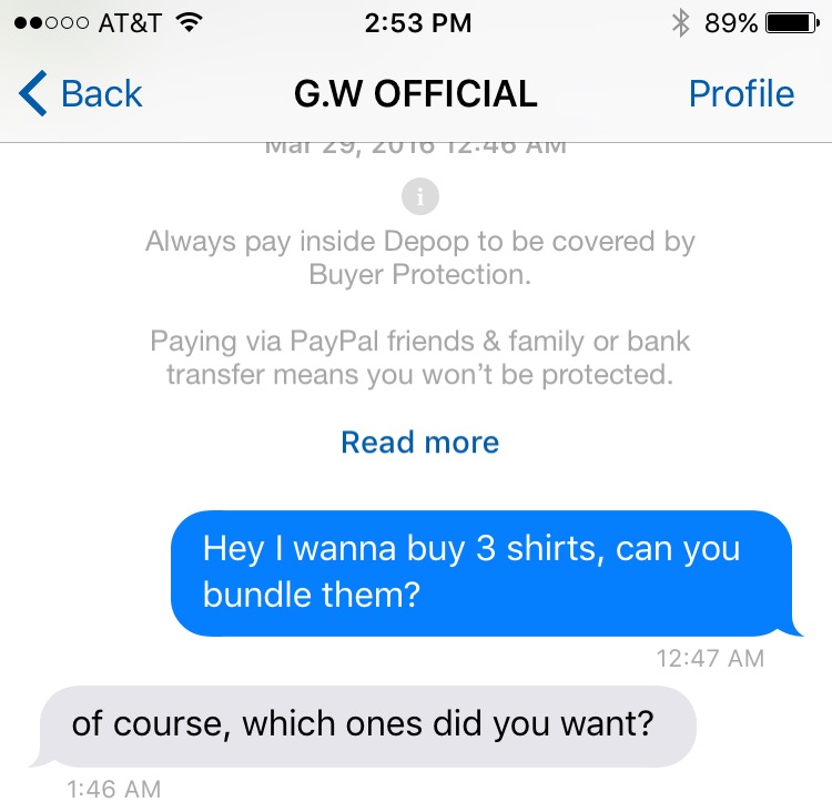 The majority of customers on Depop are cool people. It's not uncommon to start normal conversation when someone asks a question about an item. You never know, you might have a few new IG followers you met from your online shop.